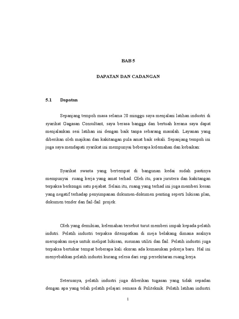 Bab 5 Docx Bab 5 Dapatan Dan Cadangan 5 1 Pengenalan Latihan Industri Amat Penting Kepada Pelajar Sebagai Pelengkap Kepada Penganugerahan Diploma Course Hero