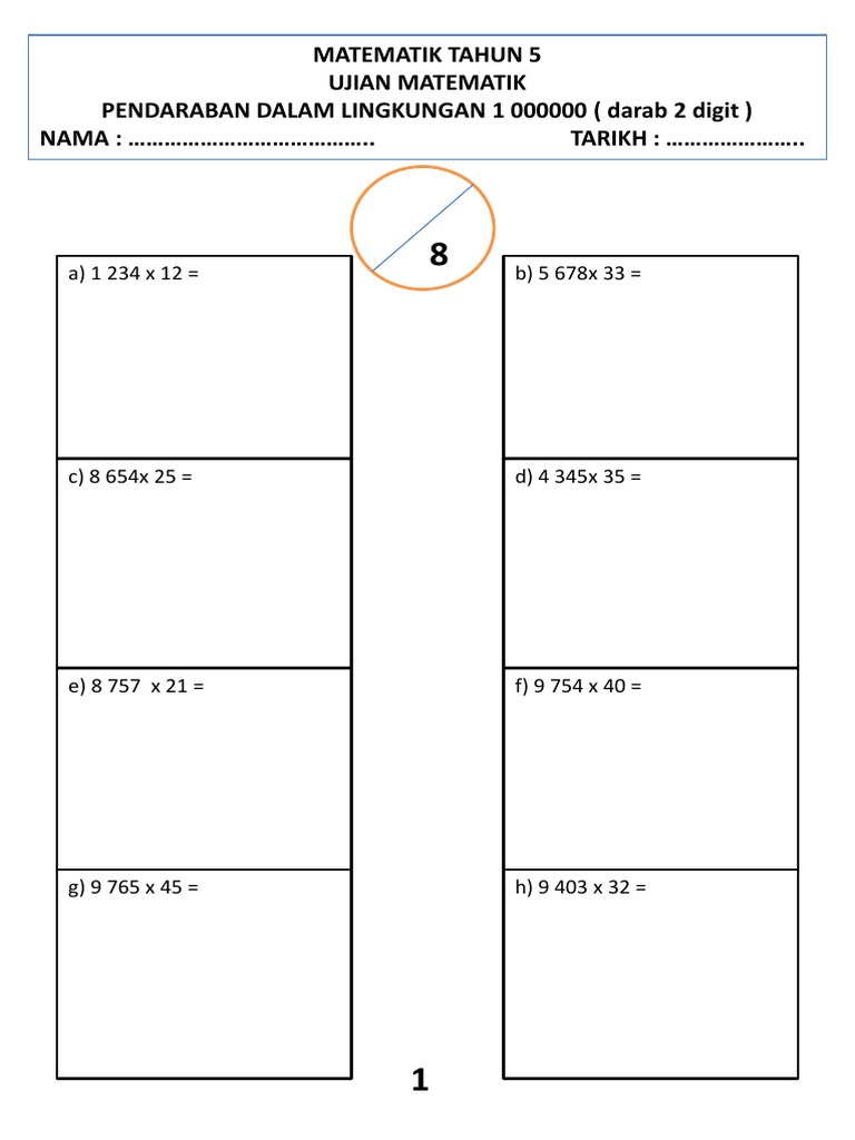 Latih Tubi Soalan Latihan Matematik Tahun 5 Cuti Bulan Mac 2 Docx Nama Tarikh Tajuk Operasi Bergabung U2013 Tambah Dan Darab 1 48 X 3 2765 5 27 68 X Course Hero