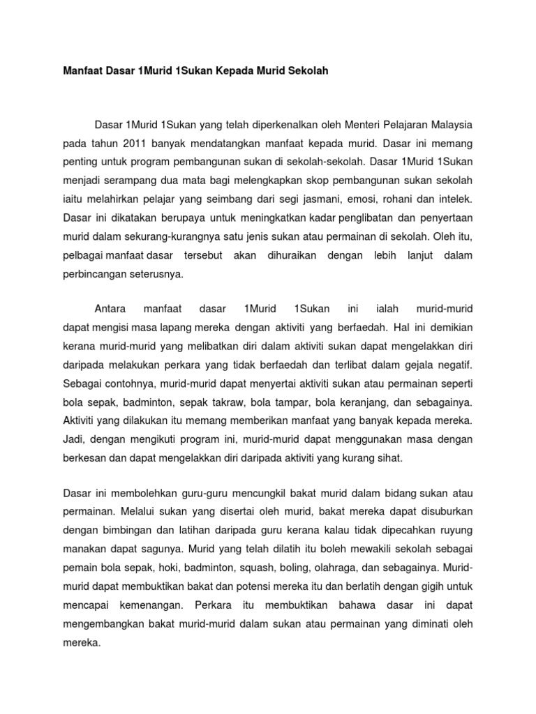 1murid 1 Sukan 1 Malaysia Essay In English Mupupd Veavkarna Info