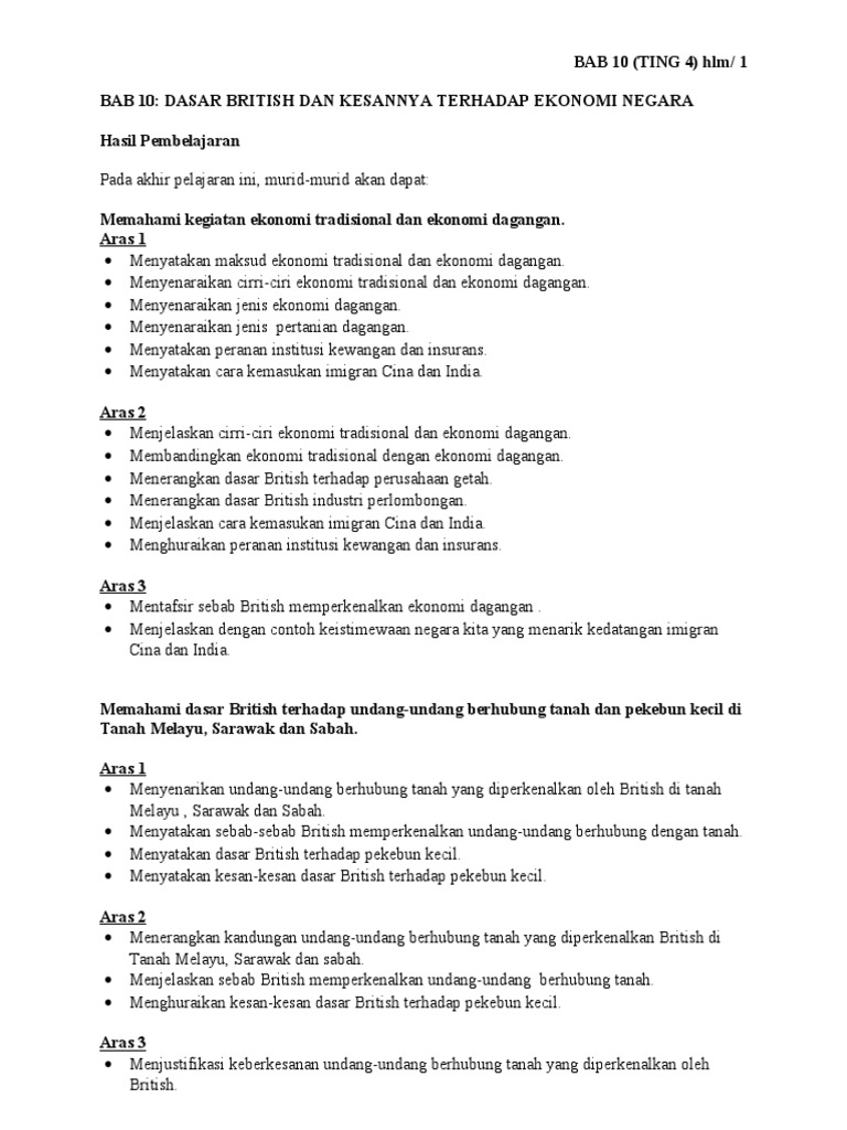 Sejarah Tingkatan 4 Bab 10 Dasar British Dan Kesannya Terhadap Ekonomi Negara