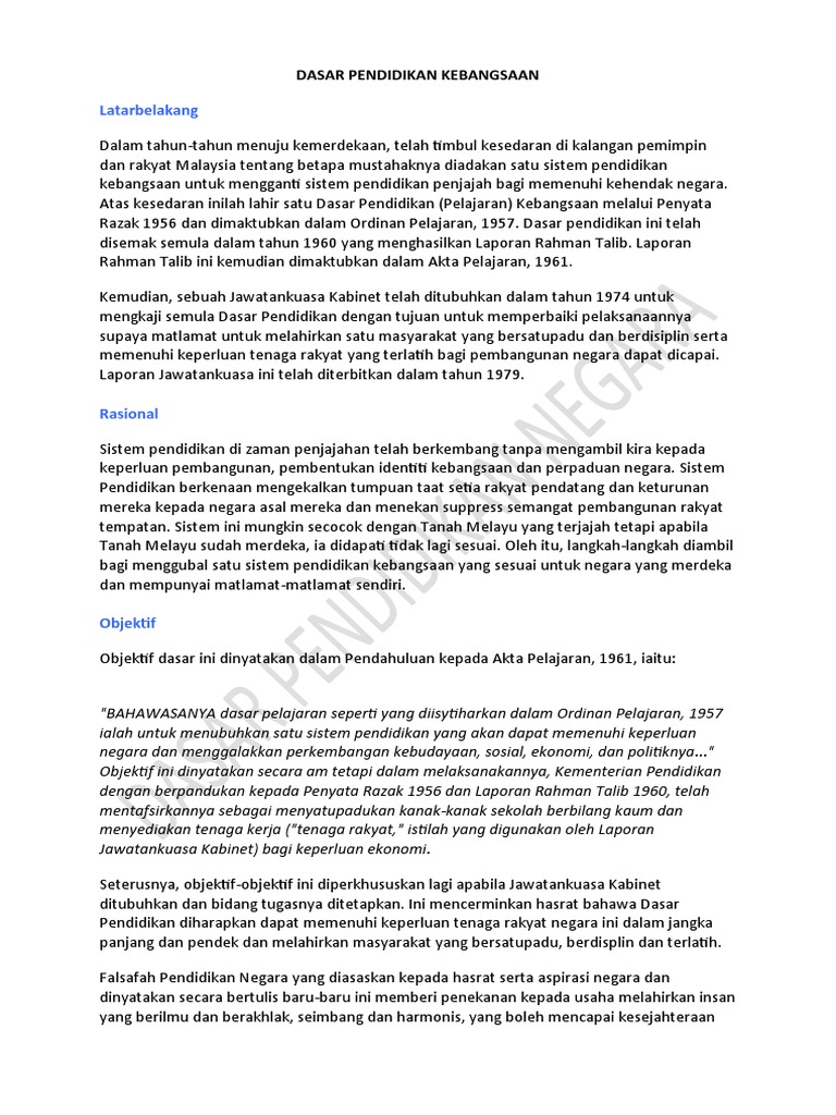 Dasar Pendidikan Kebangsaan Autosaved Pdf Dasar Pendidikan Kebangsaan U2022 Dasar Pendidikan Diperkenalkan Dengan Menggunakan Bahasa Melayu Sebagai Course Hero