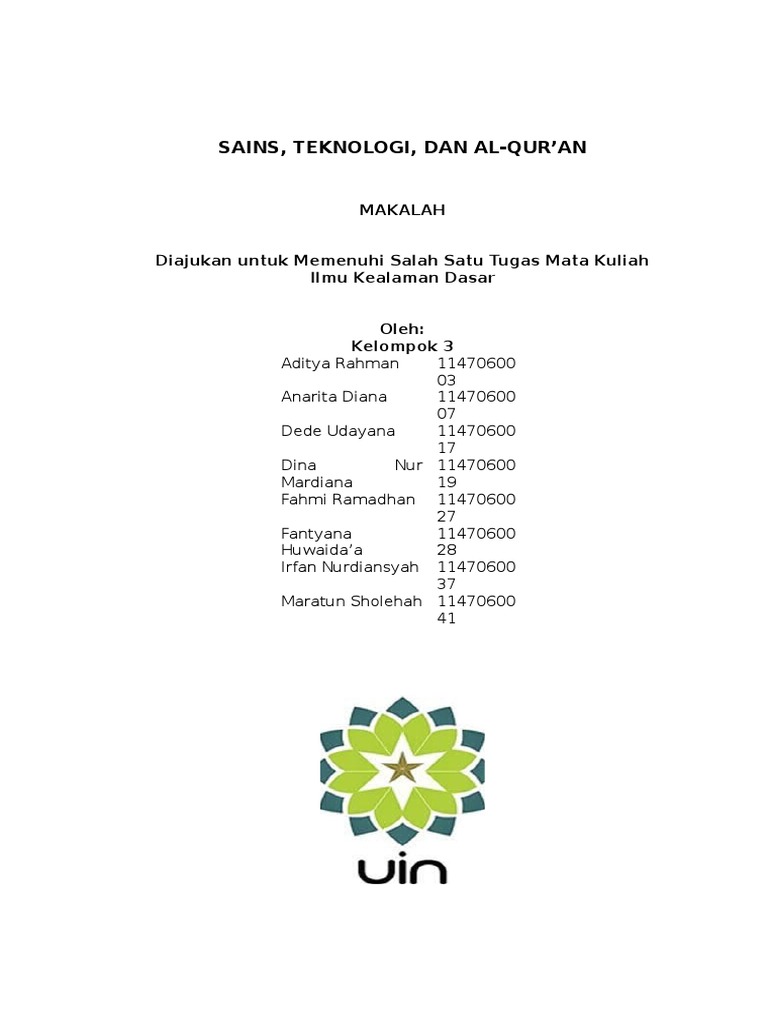 Makalah Sains Teknologi Dan Alquran