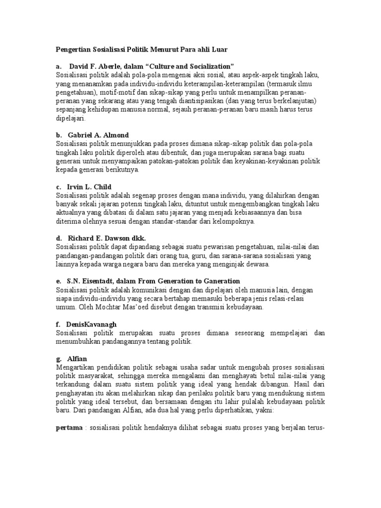 Pengertian Sosialisasi Politik Menurut Para Ahli Luar