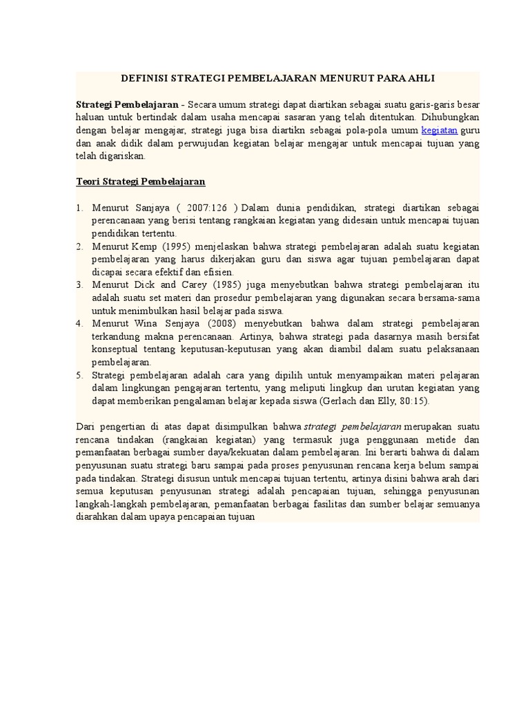 Definisi Strategi Pembelajaran Menurut Para Ahli