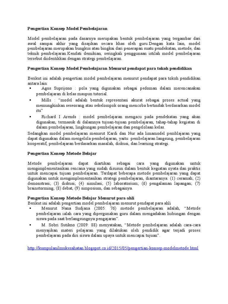 Pdf Pengertian Model Pembelajaran Jamaludin Yusuf Academia Edu