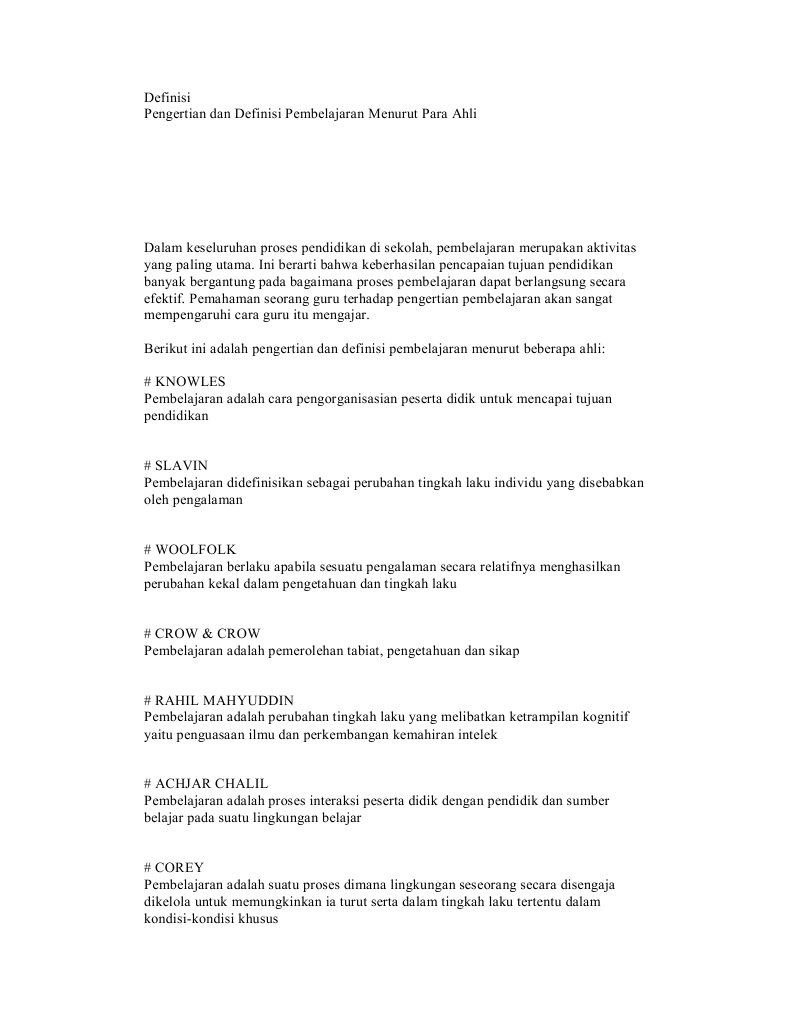 Pengertian Pembelajaran Serta Definisi Pembelajaran Menurut Para Ahli Dibidangnya Definisi Dan Pengertian Menurut Ahli