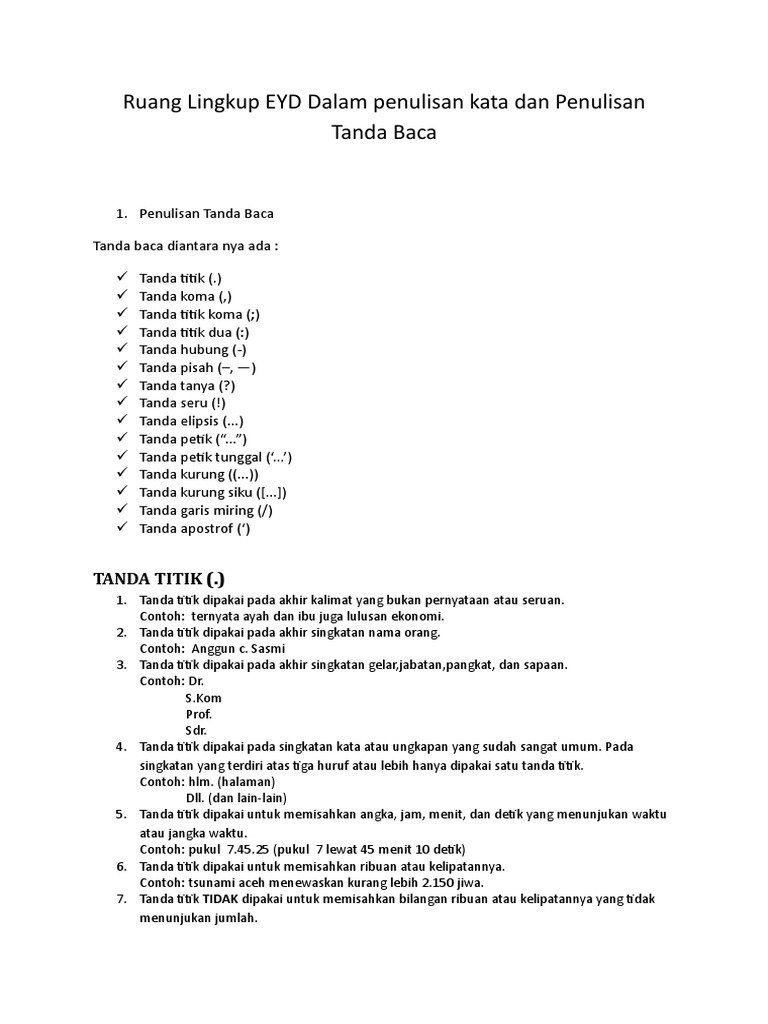 Ruang Lingkup Eyd Dalam Penulisan Kata Dan Penulisan Tanda Baca