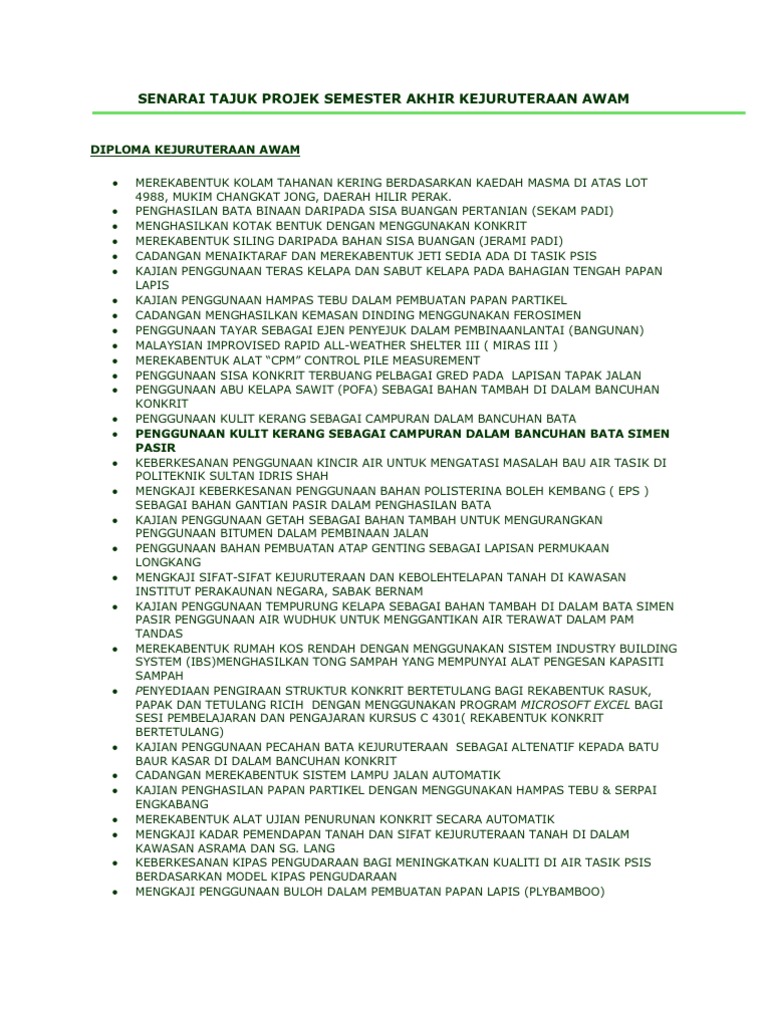 Senarai Tajuk Projek Semester Akhir Kejuruteraan Awam