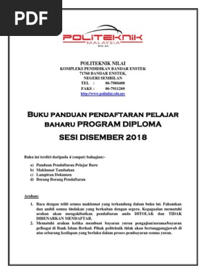 Buku Panduan Pendaftaran Pelajar Baharu Program Diploma Surat Aku Janji Politeknik Nilai 4 Pdf Document