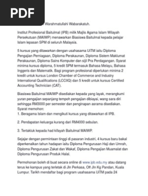 Kolej Profesional Baitulmal Kuala Lumpur Gempar Ramai Lepasan Spm Terlepas Pandang Peluang Keemasan Ini Diploma Pengurusan Haji Dan Umrah Diploma Pengajian Muamalat Diploma Pengurusan Zakat Wakaf Diploma Pengurusan