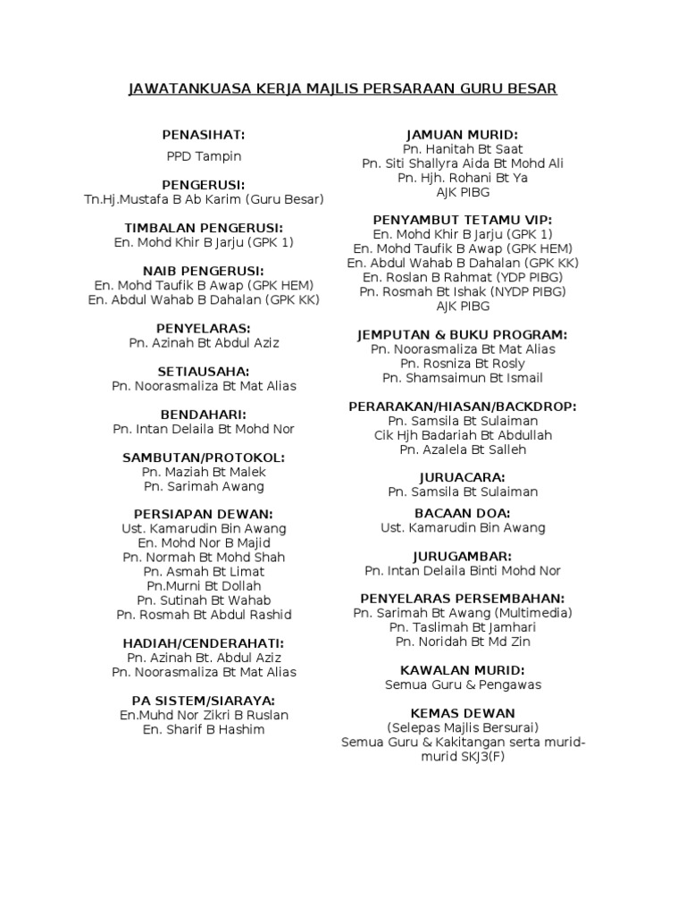 Jawatankuasa Majlis Persaraan Tahun 2018 Pages 1 6 Text Version Anyflip
