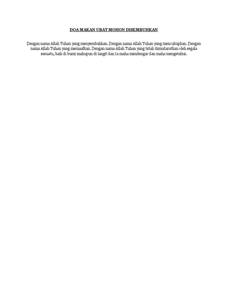 Doa sebelum makan minum ubat ب س م الله الر ح م ن الر ح ي م أ ذ ه ب ال ب ائ س ر ب الن اس ا ش ف ا ن ت الش اف ى. Kita juga pasti pernah mengalaminya diajari membaca doa sebelum dan sesudah makan oleh kedua orang tuanya atau sebagai orang tua yang mengajarkan anaknya untuk membaca doa tersebut. Kebanyakan ubat boleh diambil sebelum atau selepas makan. Amalan dan doa sebelum peperiksaan.