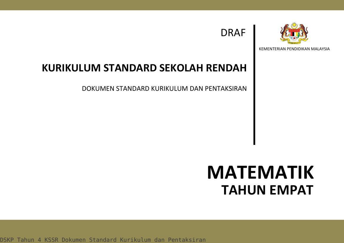 Dokumen Standard Kurikulum Dan Pentaksiran Dskp Tahun 4 Kssr Pdf Document