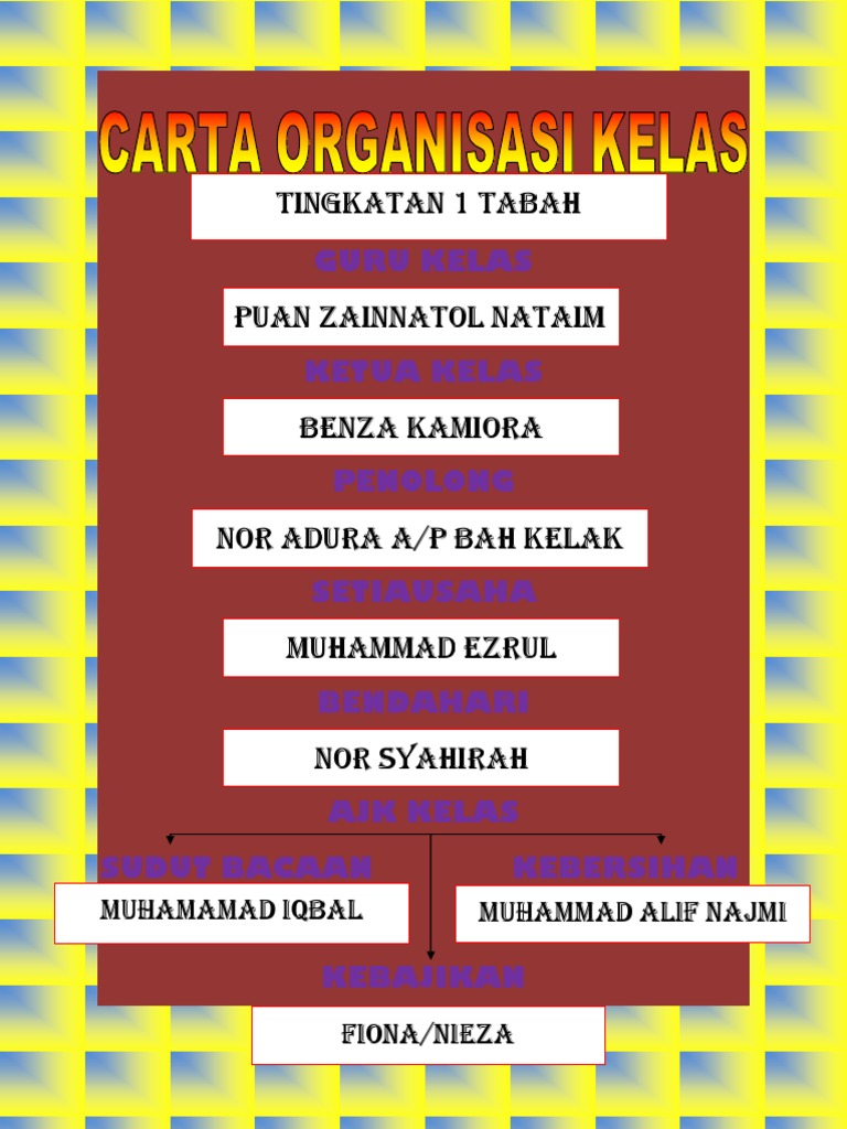 Carta Organisasi Kelas Peranan Ahli Jawatan Kuasa Organisasi Pendidikan Dekorasi Kelas