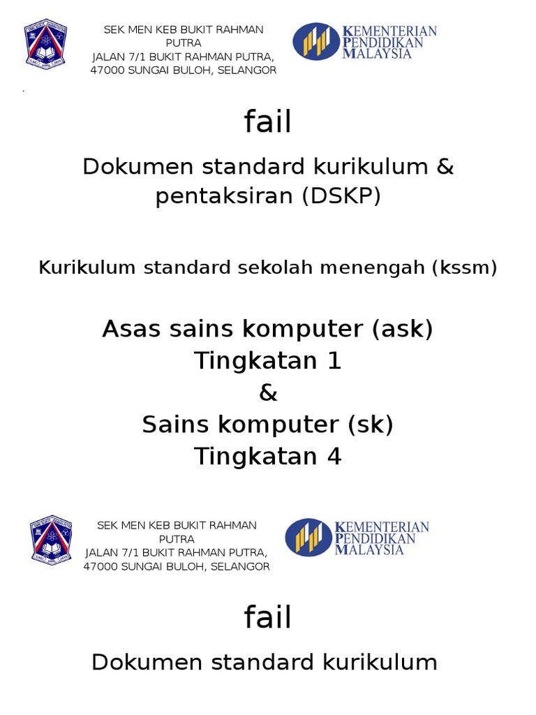 Dskp Kssm Asas Sains Komputer Tingkatan 1 Chegu Cyrildason