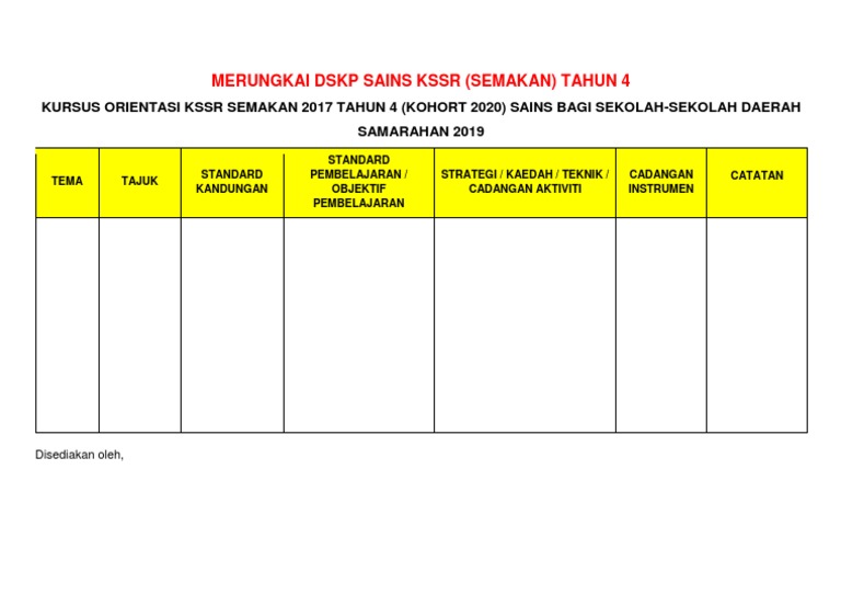 Templat Kosong Merungkai Dskp Sains Tahun 4 Semakan 2017 Docx