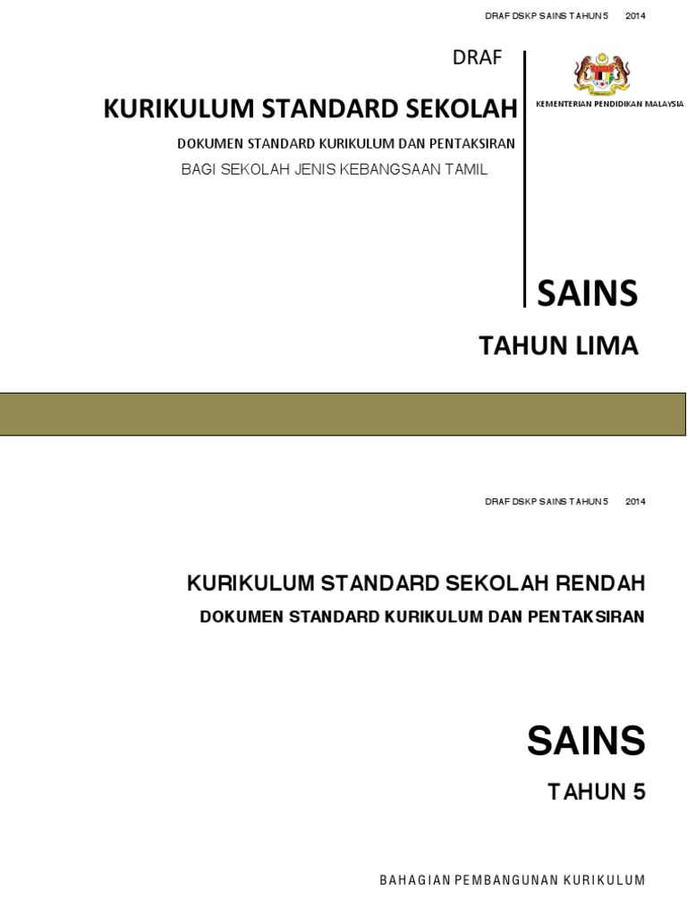 Dskp Sains Tahun 5 Sjkt Pdf Draf Kementerian Pendidikan Malaysia Kurikulum Standard Sekolah Rendah Dokumen Standard Kurikulum Dan Pentaksiran Sains Course Hero