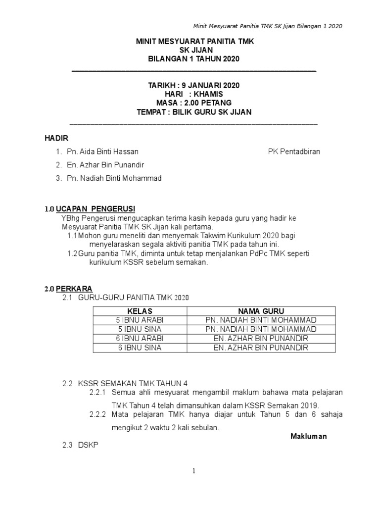 Contoh Surat Jemputan Mesyuarat Mpkk