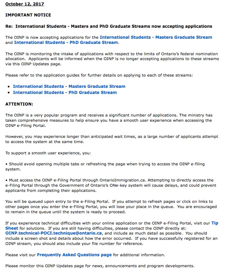 Tamara M K On Twitter Oinp Now Accepting Applications To The Employer Job Offer International Student Stream Though Already Rumoured To Have Closed Within An Hour Of Opening Cndimm Pnp Oinp Https T Co D3q89urdrt Https T Co Xd1f6p75le