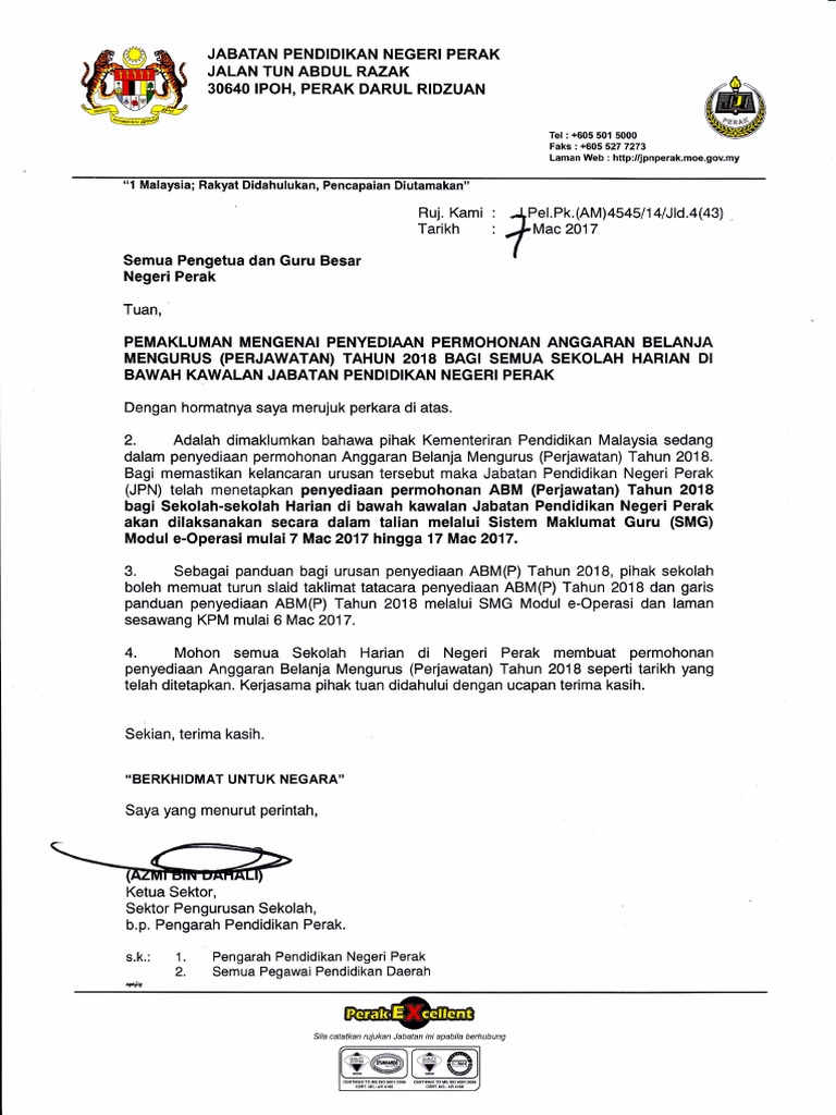 Garis panduan penyediaan abm p jpn tahun 2020. Dimaklumkan bahawa penyediaan permohonan abm p tahun 2018 bagi sekolah sekolah di bawah kawalanjabatan pendidikan negeri jpn akan dilaksanakan secara dalam talian melalui modul pengurusan guru e operasi mulai 7 mac 2017 hingga 27 mac 2017 manakala sekolah sekolah di bawah kawalan bahagian sektor operasi pendidikan dilaksanakan secara format manual mulai 7 mac 2017 hingga 21 mac 2017. Sistem eoperasi adalah sebuah sistem pangkalan modul pengurusan guru yang dibangunkan oleh bahagian pengurusan maklumat bpm kementerian pendidikan malaysia kpm dan diseliakan oleh bahagian pengurusan sekolah harian bpsh bahagian pengurusan sumber manusia bpsm dan sektor operasi pendidikan sop kpm. Permohonan abm perjawatan perdana menteri malaysia ke 8.