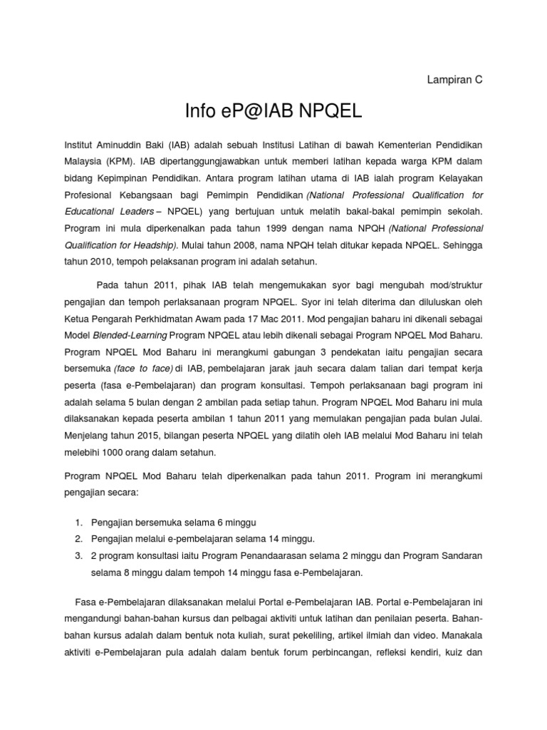 Npqel Iab Edu My Portal E Pembelajaran Npqel 2 Npqel Iab