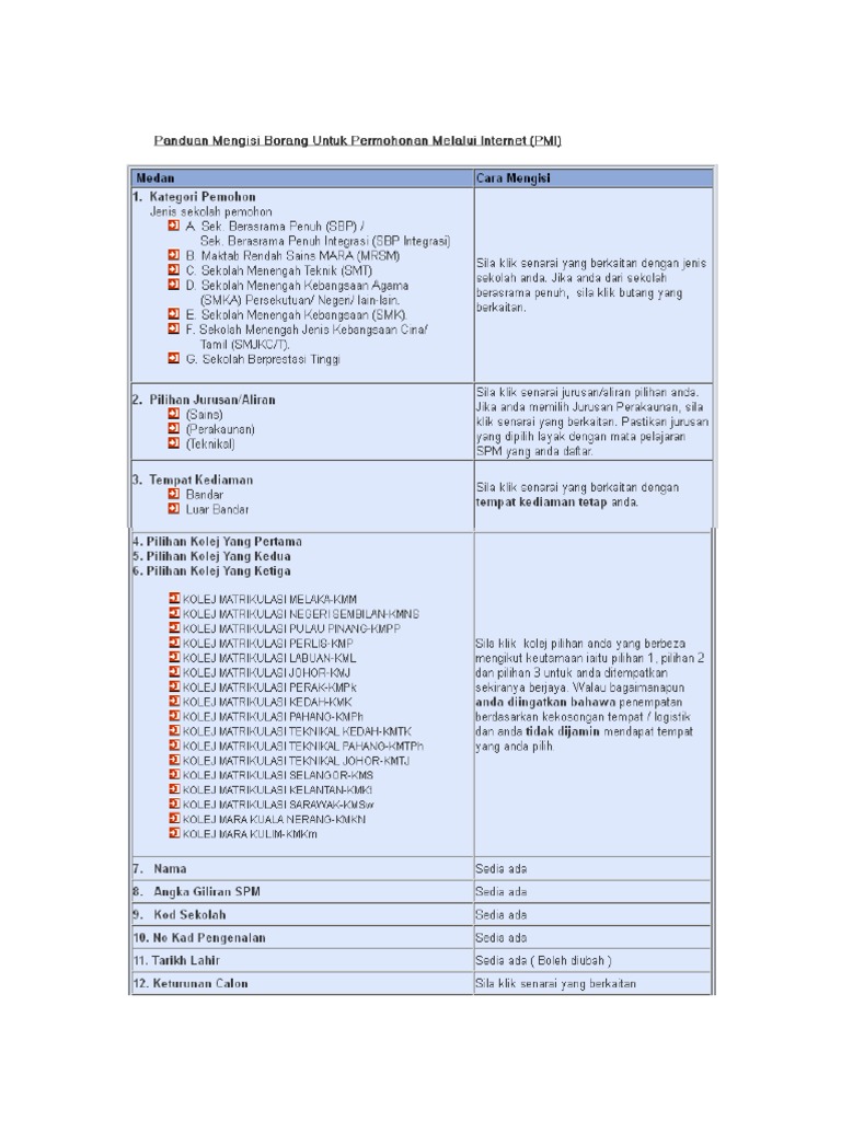 Panduan Mengisi Borang Matrikulasi