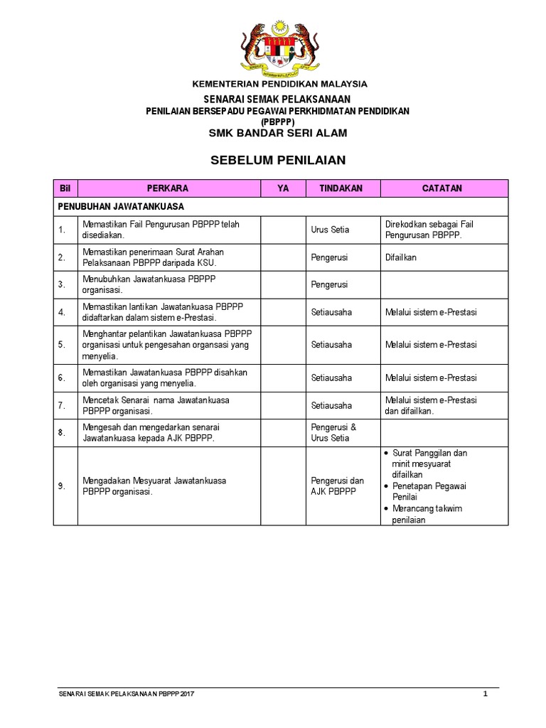 Penilaian Bersepadu Pegawai Perkhidmatan Pendidikan Pbppp Smk Toh Johan Trong Perak