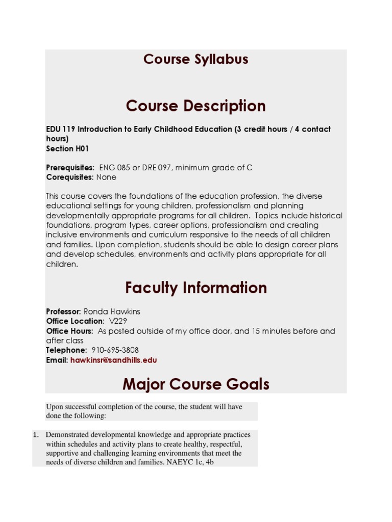 Introduction To Early Childhood Education Course Syllabus Pdf Free Download