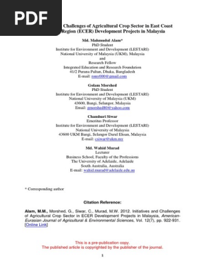 Pdf Initiatives And Challenges Of Agricultural Crop Sector In Ecer Development Projects In Malaysia