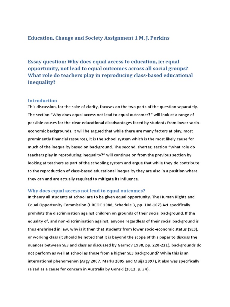 Education Change And Society Assignment 1 Mj Perkins Socioeconomic Status Social Inequality