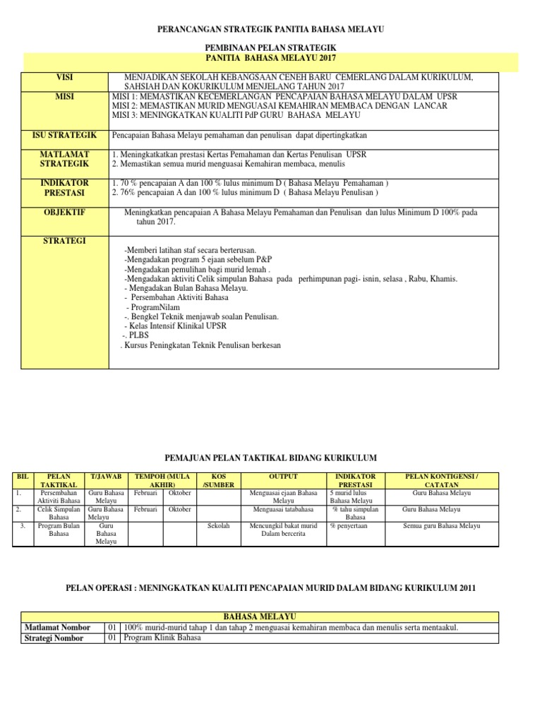 Perancangan Strategik Panitia Bahasa Melayu 1