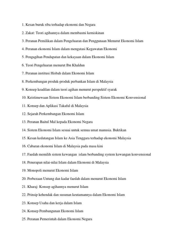 Sistem Ekonomi Islam Perkembangannya Di Malaysia Cadangan Jawapan Untuk