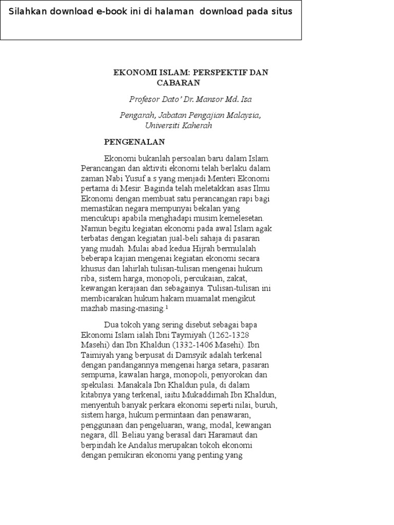 Ekonomi Islam Perspektif Dan Cabaran