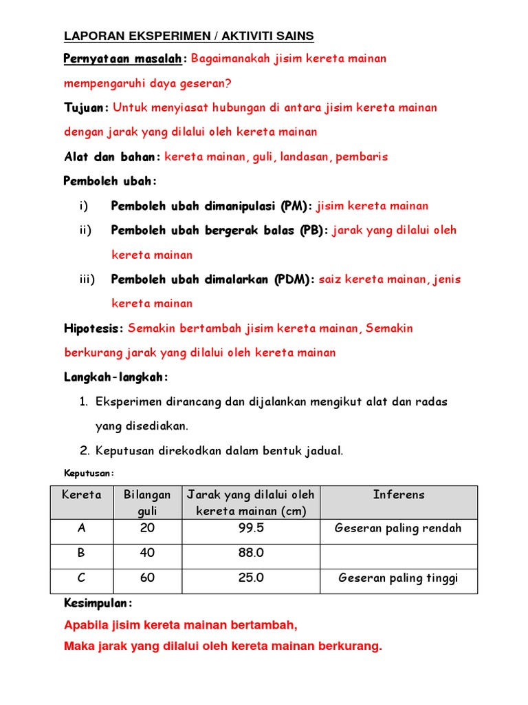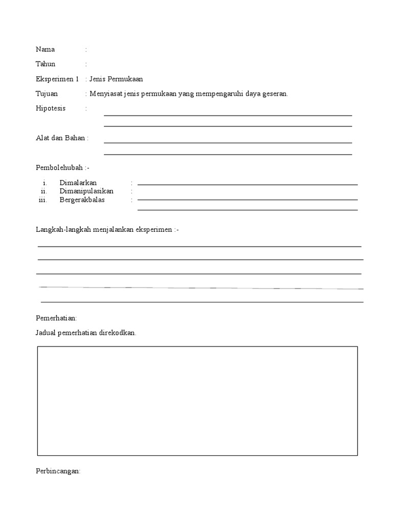 Laporan Amali Sains Tahun 6 Daya Geseran