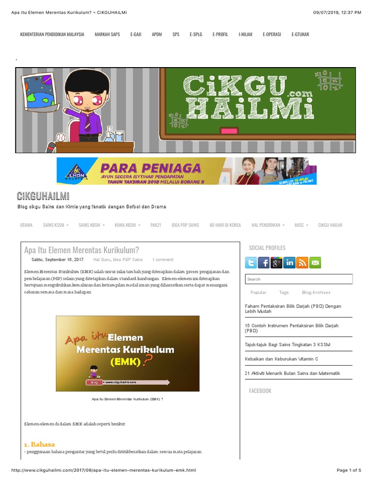 10 Elemen Merentas Kurikulum Emk Semua Subjek Kssr Sekolah Rendah Layanlah Berita Terkini Tips Berguna Maklumat