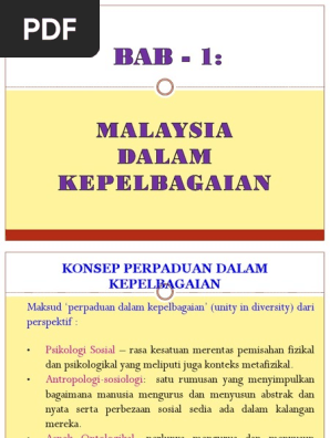 Bab 1 Malaysia Kesepaduan Dalam Kepelbagaian