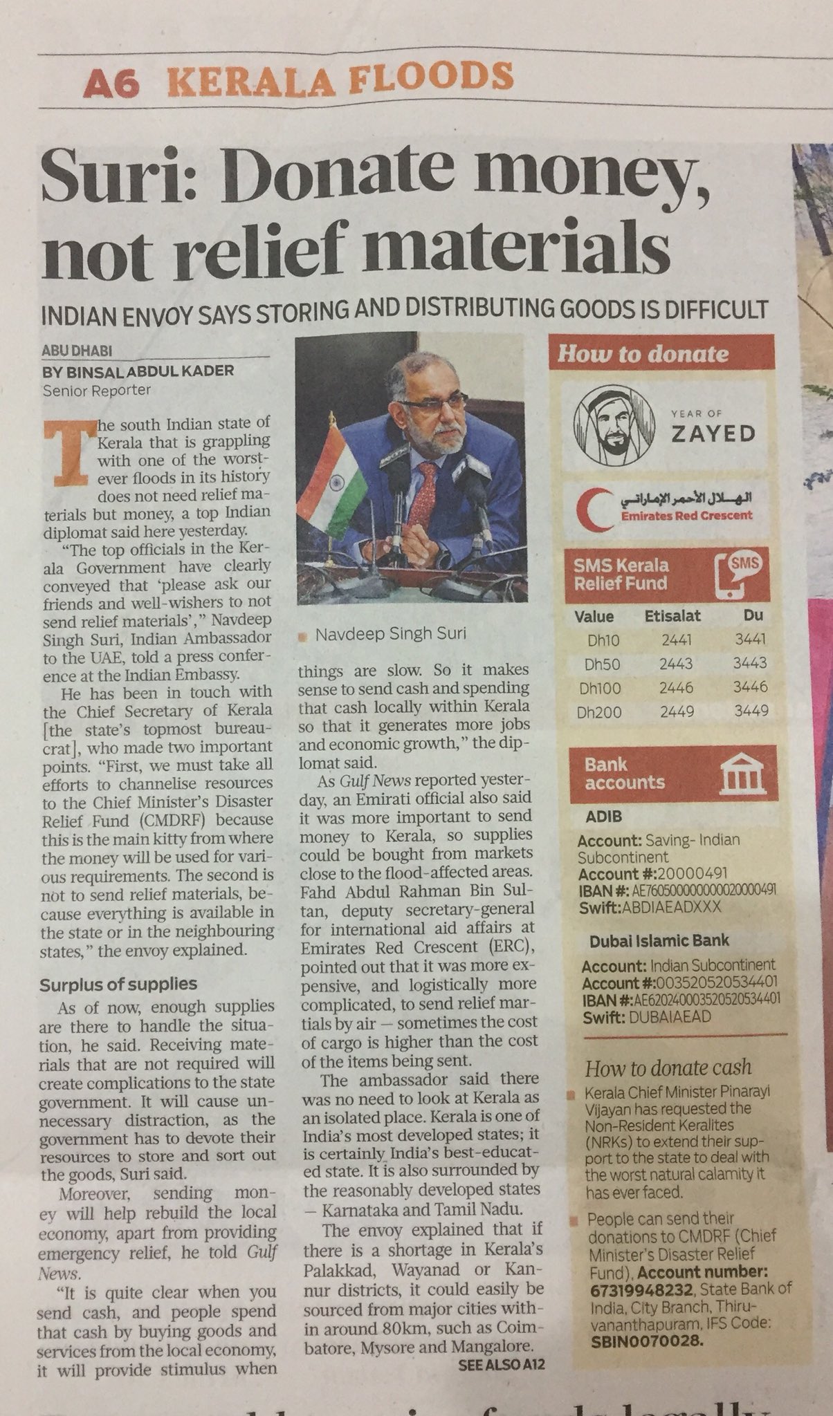 India In Uae On Twitter Donating And Remitting Money Most Efficient And Helpful Way Of Assisting The Flood Affected In Kerala Says Amb Navdeepsuri Drawing Attention Of Expat Associations To Observe Uae