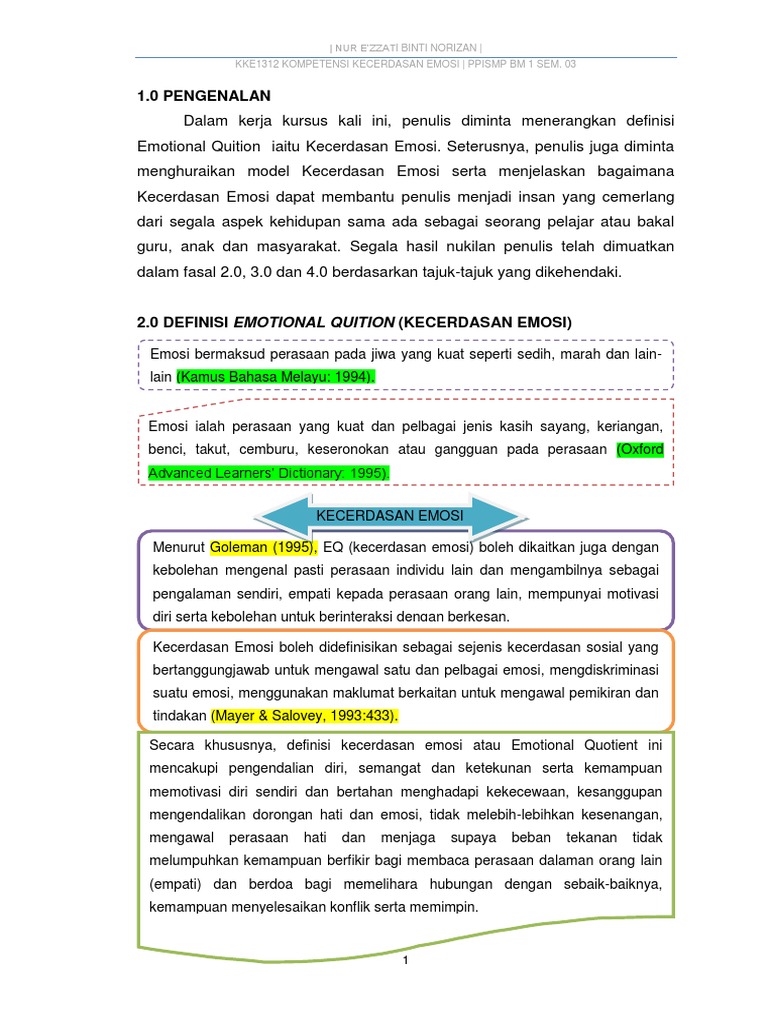 1 0 Pengenalan Nur E Zzati Binti Norizan Kke1312 Kompetensi Kecerdasan Emosi Ppismp Bm 1 Sem 03