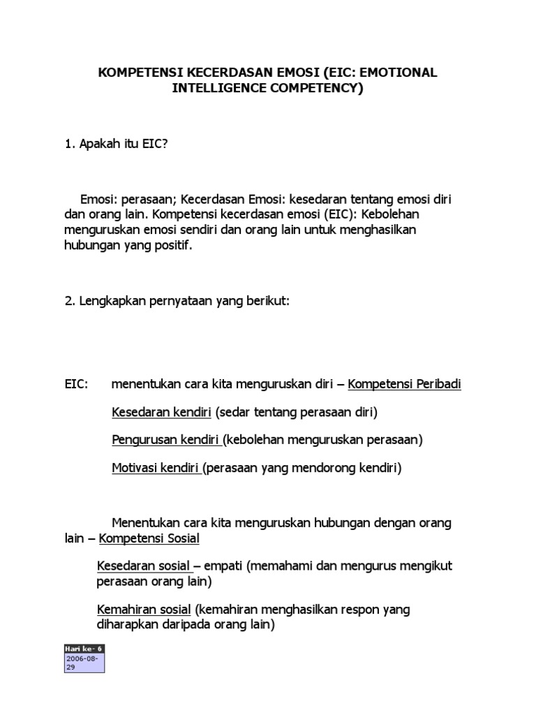Kompetensi Kecerdasan Emosi Eic Emotional Intelligence Competency
