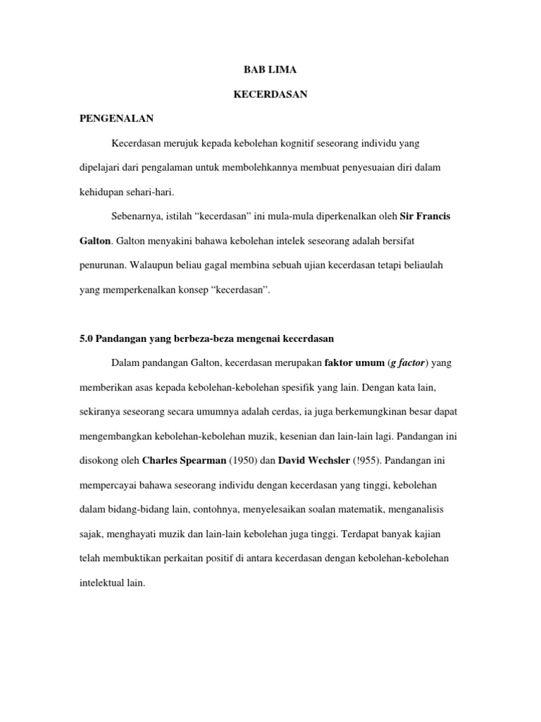 Bab Lima Kecerdasan Pengenalan Kecerdasan Merujuk Pdf Document